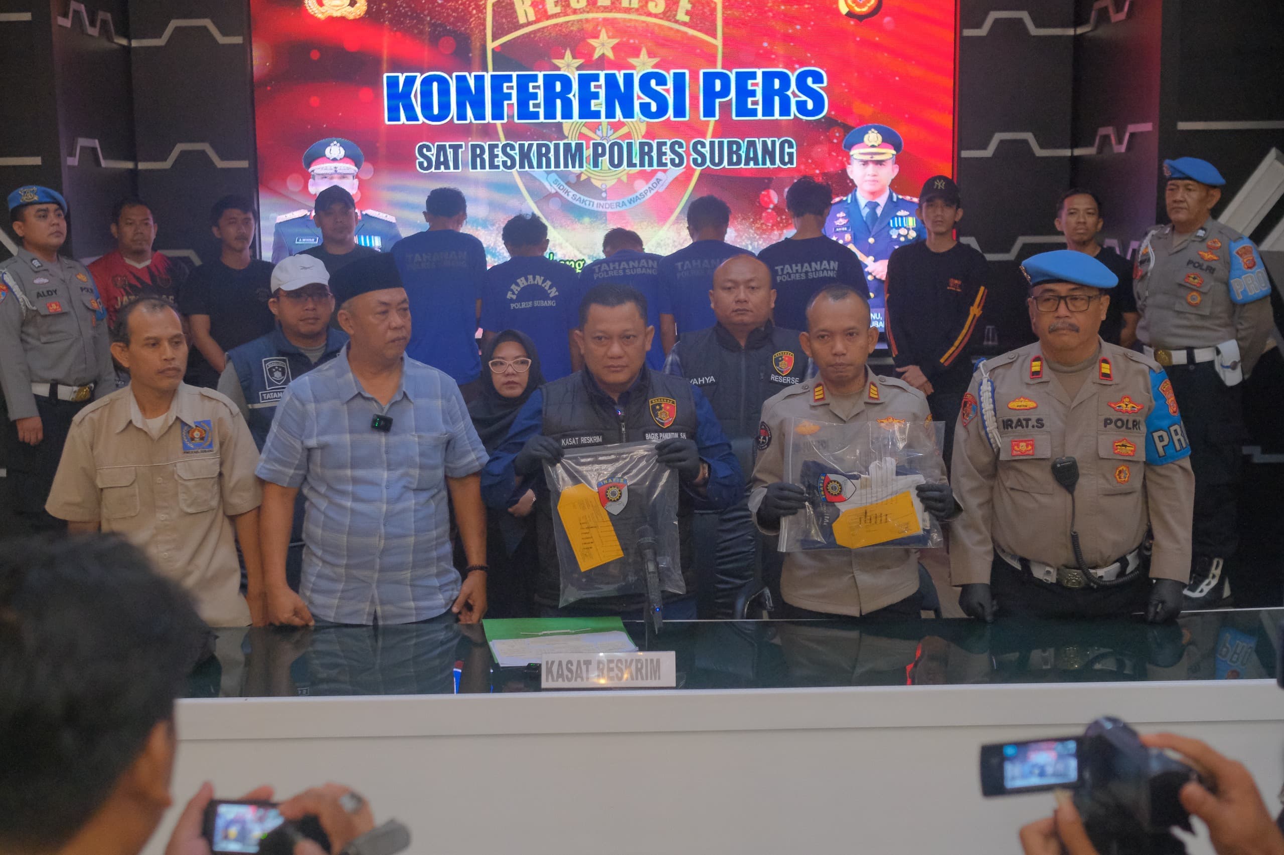 Kasus ini diungkap dalam konferensi pers yang digelar Polres Subang di Aula Patriatama, Jumat 11 April 2025, dipimpin oleh Kasat Reskrim AKP Bagus Panuntun, Kasi Humas AKP Edi Juhedi dan Kanit Propam.