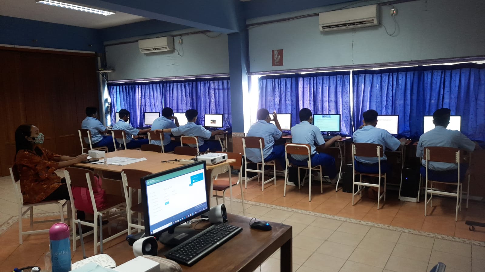 ANBK dilaksanakan diruang praktek Rekayasa Perangkat Lunak (RPL). Satu kelas terdiri 1 orang proktor, 1 orang pengawas dan 15 siswa. Jadi total ada semuanya ada 3 proktor, 3 pengawas dan 2 teknisi. Pengawas dan proktor hadir 45 menit sebelum asesmen dimulai. Sedangkan siswa hadir 15 menit sebelum ujian dimulai.