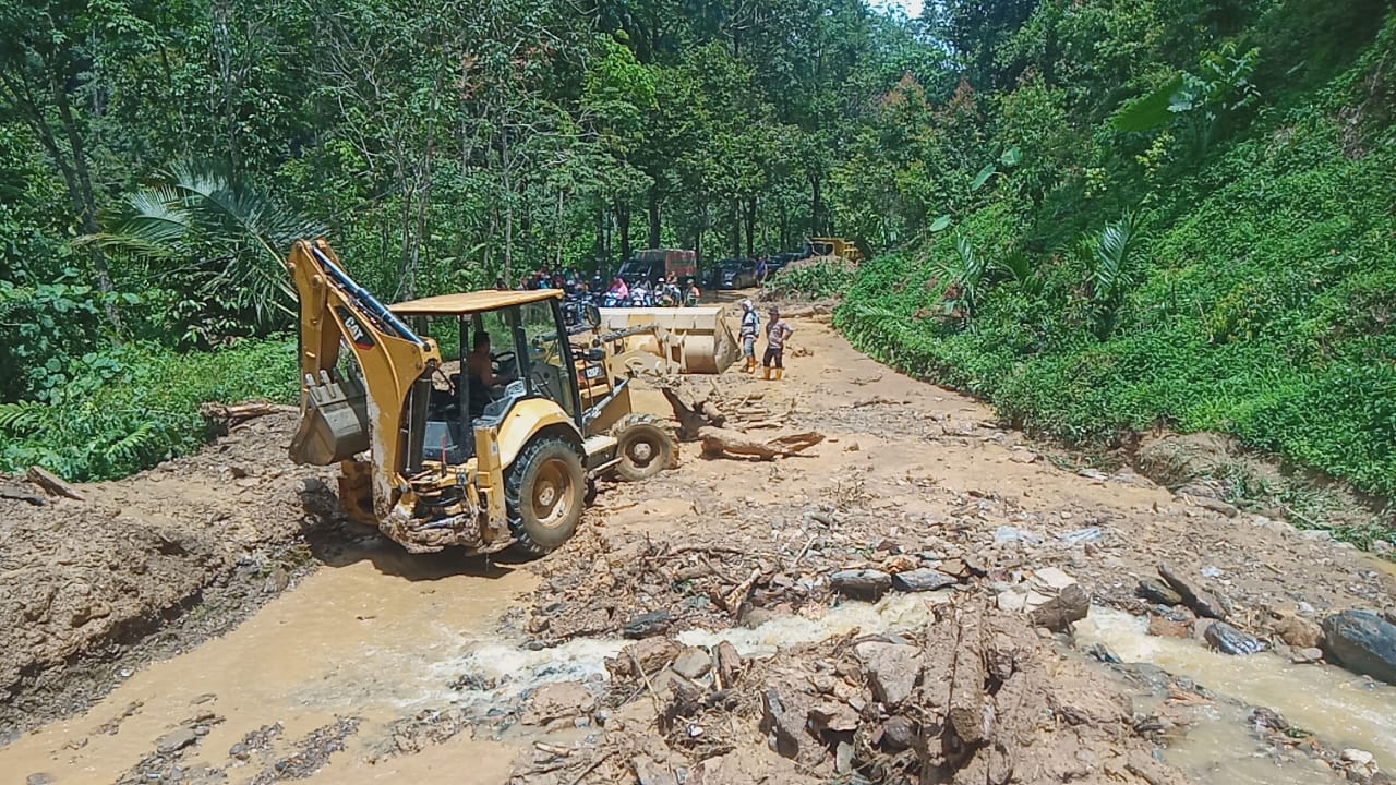 Sedangkan untuk area titik longsor terberat langsung dilaksanakan pembersihan dengan menggunakan Backholoaders milik Perusahaan yang sedang melaksanakan pekerjaan tak beberapa jauh dari lokasi longsor.