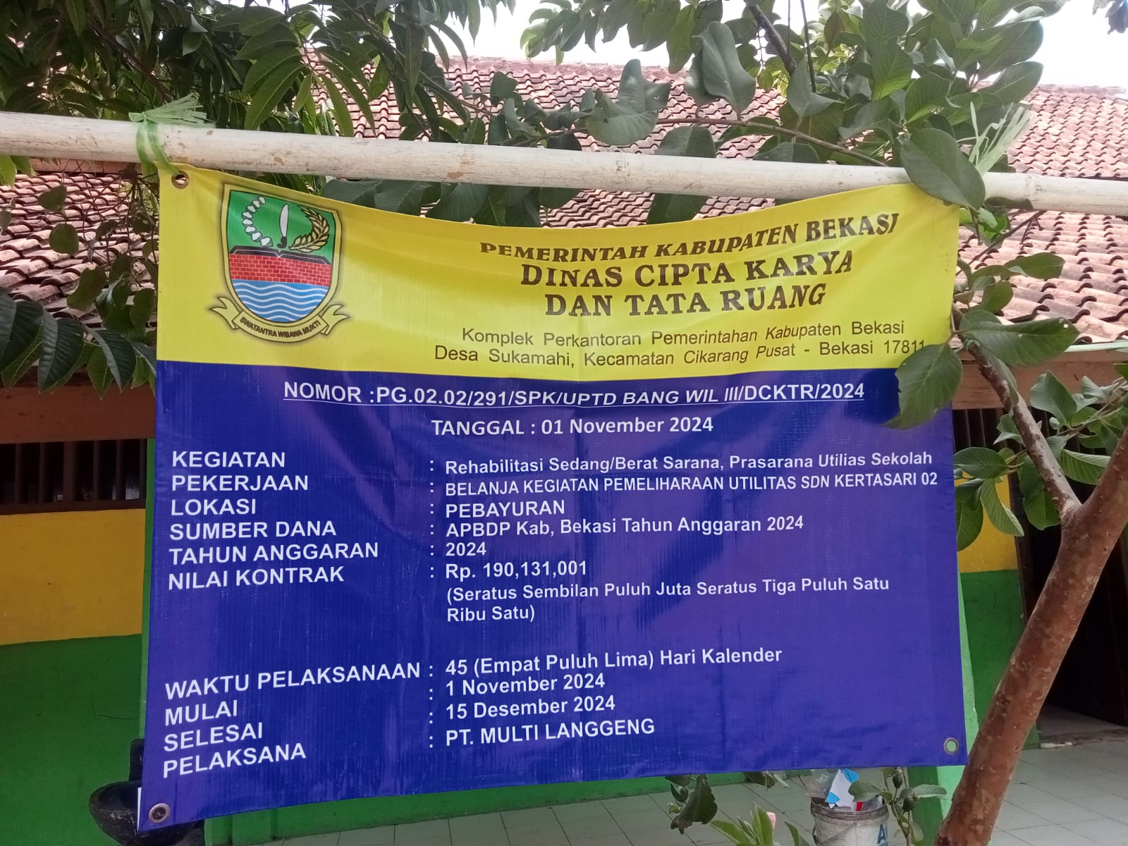 Reportika.co id || Kabupaten Bekasi – Pekerjaan Rehabilitasi Sedang/Berat Sarana,Prasarana Utilitas SDN Kertasari 02 Kelurahan Kertasari, Kecamatan Pebayuran Kabupaten Bekasi. baru di kerjakan beberapa hari menurut pantauan awak media diduga tidak sesuai spek, dan terlihat dalam pekerjaannya amburadul.