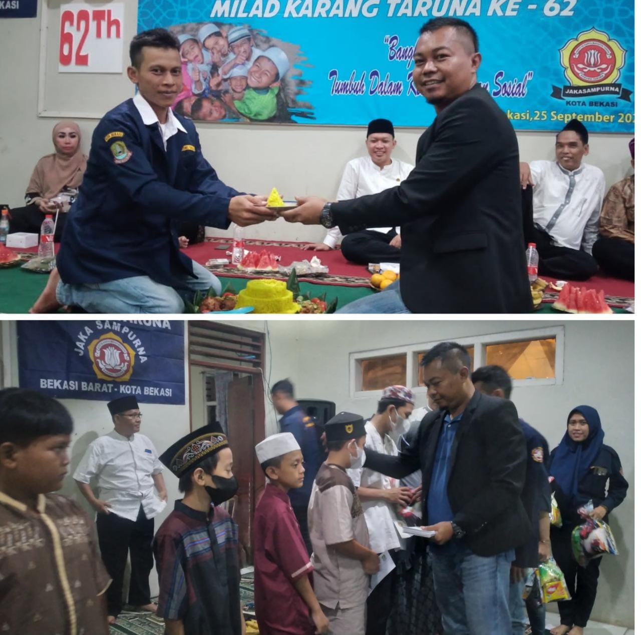 Reportika.co.id || Kota Bekasi – Pengurus Karang Taruna Kelurahan Jakasampurna tasyakuran dan santunan anak yatim dalam rangka milad Karang Taruna ke-62 tahun “Bangkit Bersama Tumbuh Dalam Kesetiakawanan Sosial”, Bekasi Barat, Kota Bekasi.Minggu Malam (25/09/2022).