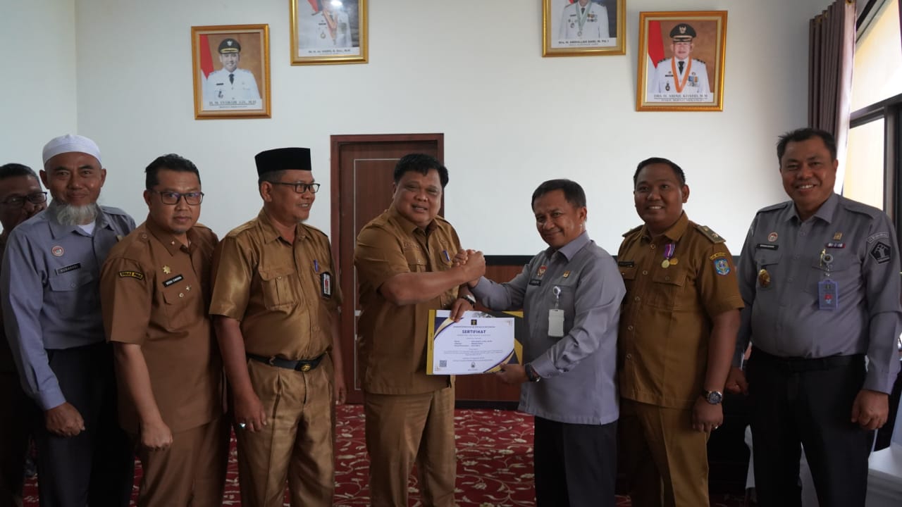 Penyerahan sertifikat dilaksanakan di ruang kerja PJ. Sekda Kabupaten Merangin, Zulhifni, pada Selasa (04/10) sekitar pukul 10.00 WIB.