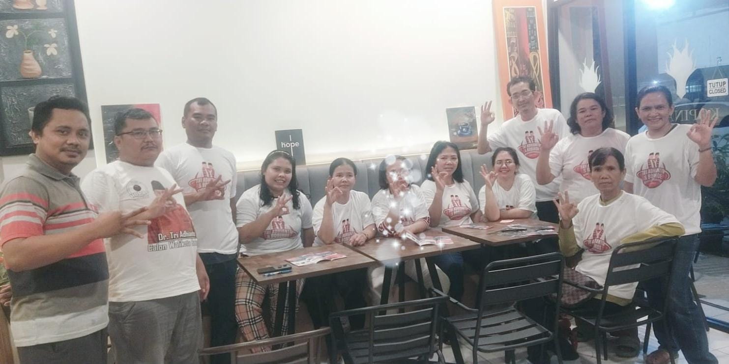 “Ayo kita datang ke TPS untuk mencoblos Tri Adhianto – Harris Bobihoe. Kita melihat hanya di Tri ada toleransi dan kelanjutan,” paparnya.