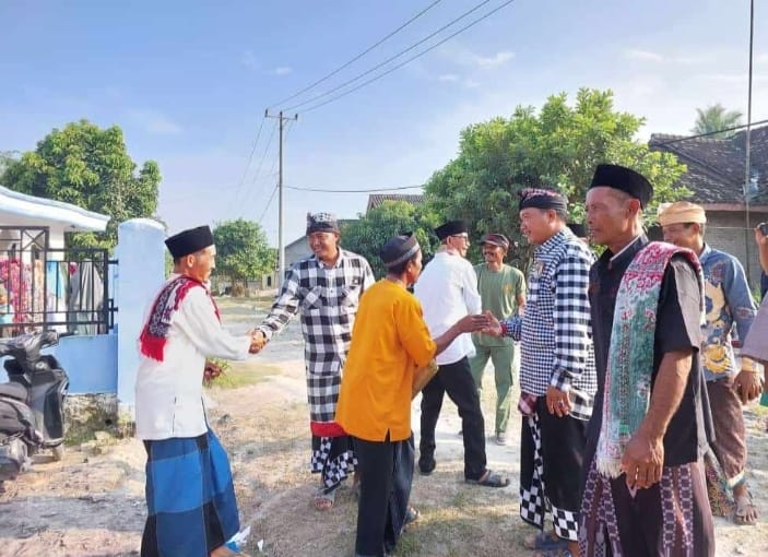Kehadiran kepala desa di dampingi para tokoh agama umat Kristen dan tokoh agama umat Hindu, mendatangi warga umat islam yang selesai melaksanakan sholat Id. Dimasjid Darul Farllah.