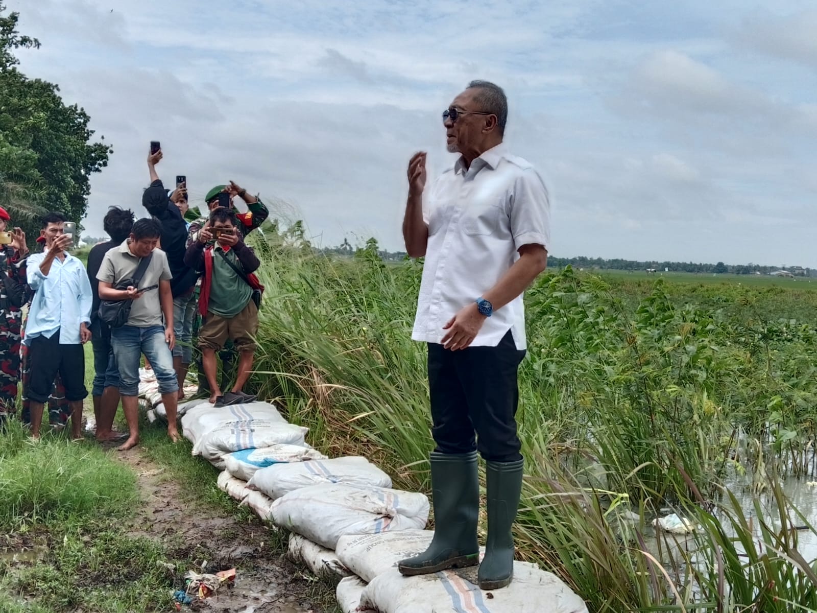 Selain memberikan bantuan bibit dan sembako Menko Zulkipli Hasan di dampingi oleh Bupati dan Wakil Bupati Lampung Selatan terpilih beserta Danrem / Gatam Dandim/ LS dan Kapolres / LS juga meninjau irigasi tersier yang telah limpas dan masuk ke pemukiman masyarakat RT 7 dan RT 8 di Desa Bandan Hurip Kecamatan Palas Lampung Selatan