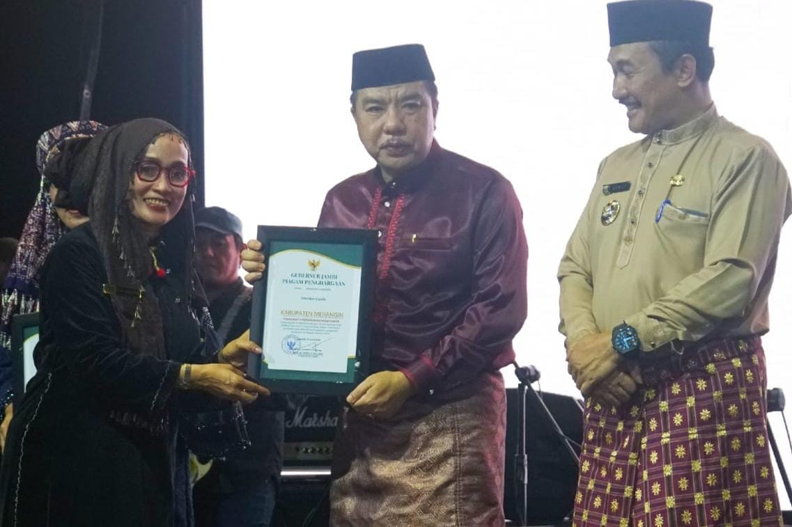 Reportika.co.id || Merangin, Jambi – Kabupaten Merangin berhasil meraih Penghargaan Pergerakan Wisatawan dari Gubernur Jambi H Al Haris, pada acara pembukaan Festival Batanghari, di RTH Putri Pinang Masak Kota Jambi, Jumat malam (05/7).