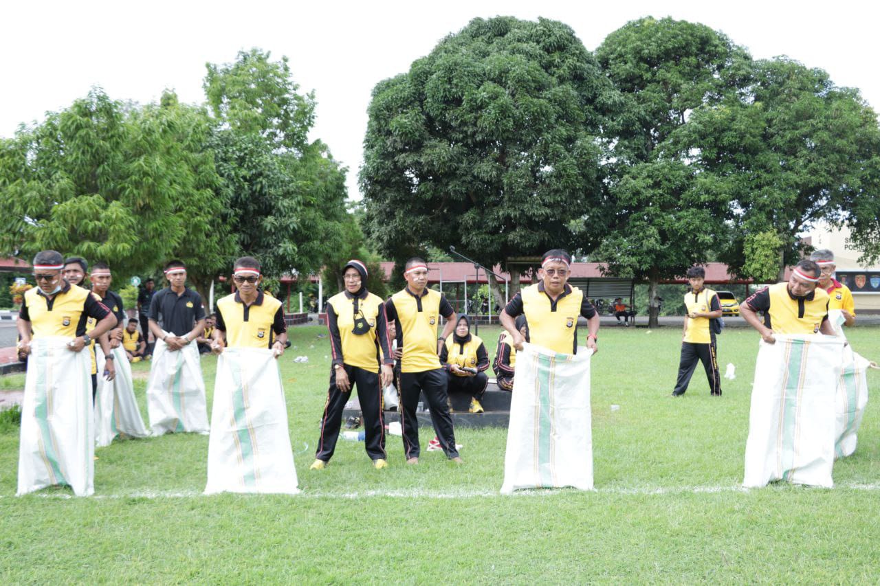 Peserta lomba dalam momentum HUT kemerdekaan RI ke-77 di ikuti oleh Waka Polres, para Kabag.para Kasat,Polwan Polres Wajo serta personil Polres Wajo.