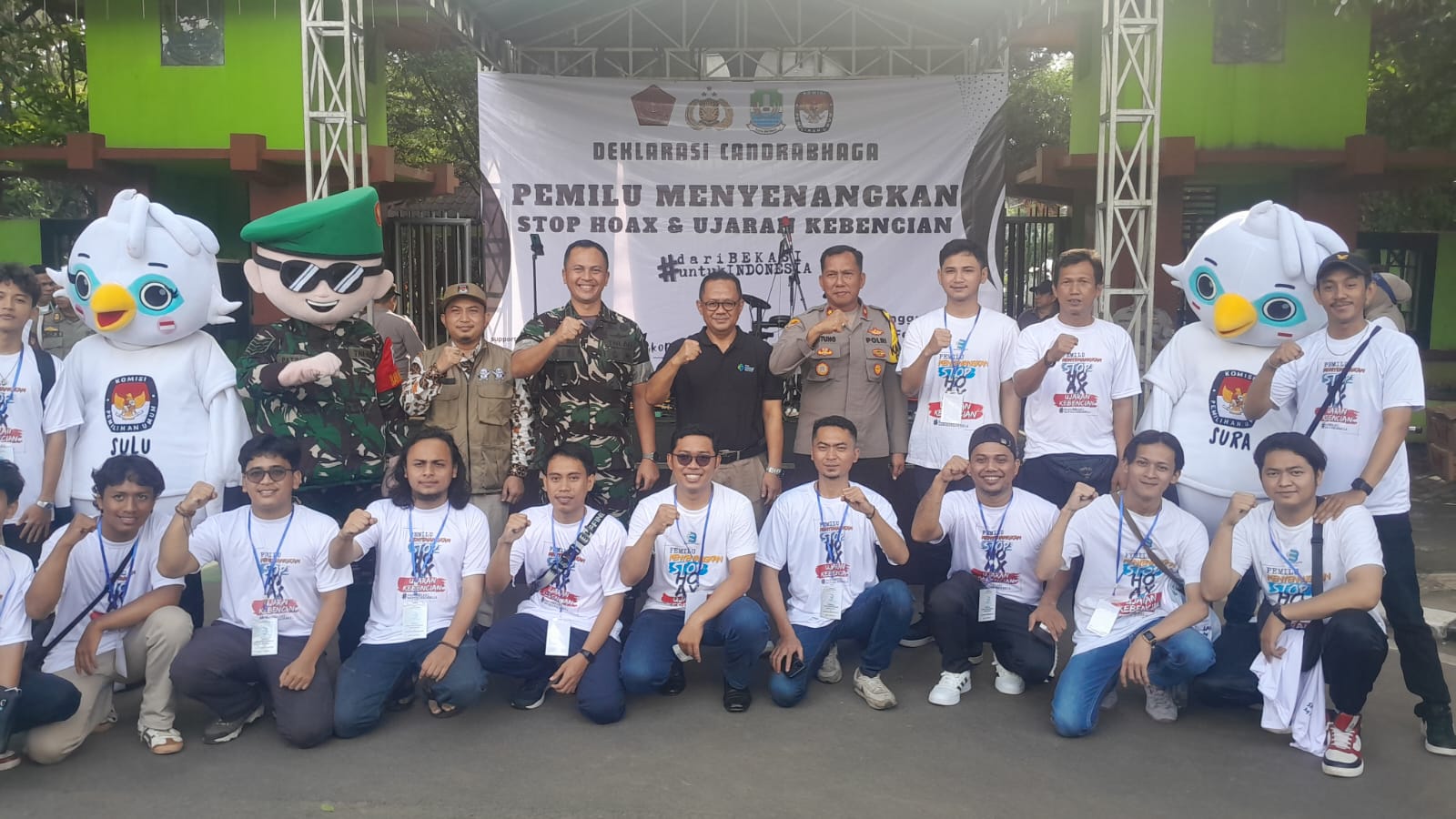 Reportika.co.id || Kota Bekasi – Milenial Candrabaga Bekasi mendeklarasikan untuk yang pertama kalinya di Kota Bekasi, bertempat Depan kantor Wali Kota jalan Ahmad Yani, Kota Bekasi, mengangkat tema “PEMILU MENYENANGKAN STOP HOAX & UJARAN KEBENCIAN” yang dihadiri Penjabat (Pj) Wali Kota Raden Gani Muhammad, Komandan Kodim 0507 Rico Sirait, Komisi Pemilihan Umum (KPU) Afif Fauzi, dan perwakilan Kapolrestro Kota Bekasi yang diwakili oleh Kapolsek Bekasi Selatan untung Riswaji.