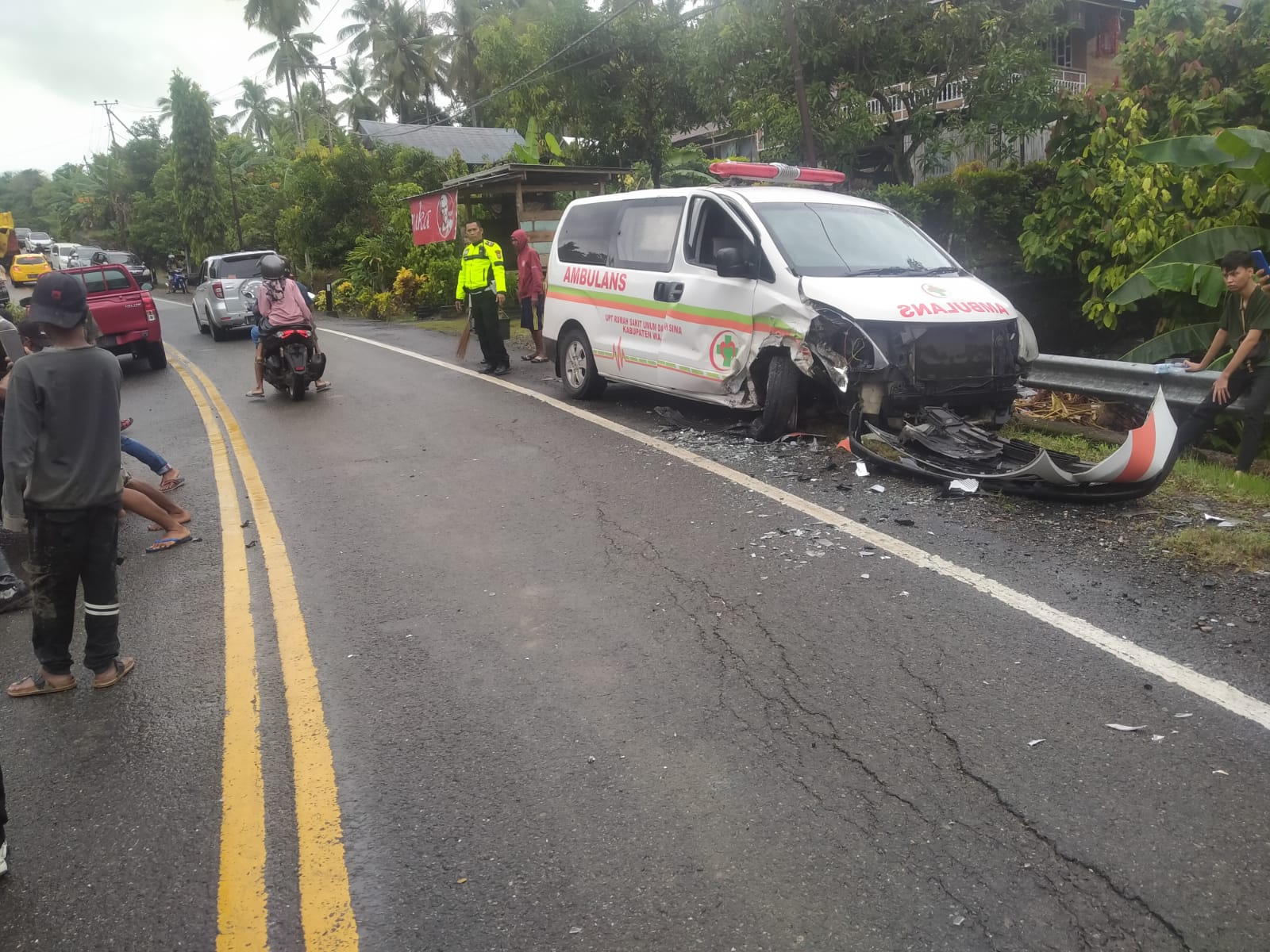 “Adapun mobil Ambulance Hyundai DW 9066 B milik RSUD Siwa mengalami kerusakan pada pintu depan kanan, bemper depan ringsek dan kaca depan retak,”ungkapnya.