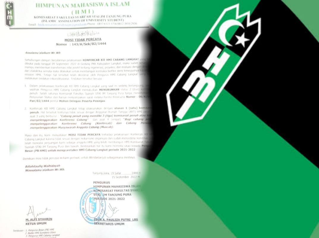 Reportika.co.id || Langkat, Sumut – Mosi tidak percaya terhadap pelaksanaan Konfercab XII HMI Cabang Langkat dilayangkan karena tidak sesuai dengan mekanisme organisasi_ Kamis (15/09/22).