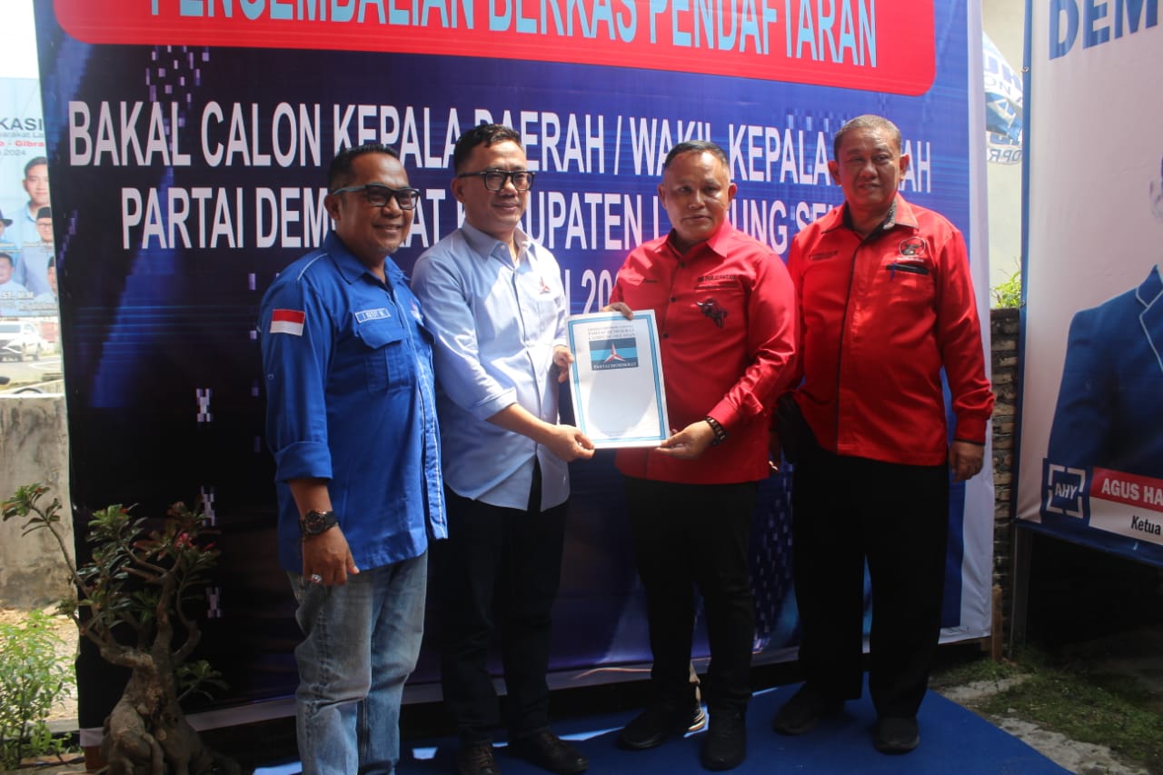 Reportika.co.id || Lampung Selatan, Lampung – Bakal calon Bupati Lampung Selatan Petahana Bupati Lampung Selatan Nanang Ermanto dan Ketua DPRD Lampung Selatan Hendry Rosady sama sama dari Partai PDI P mengembalikan berkas pencalonan dari Partai Demokrat Lampung Selatan