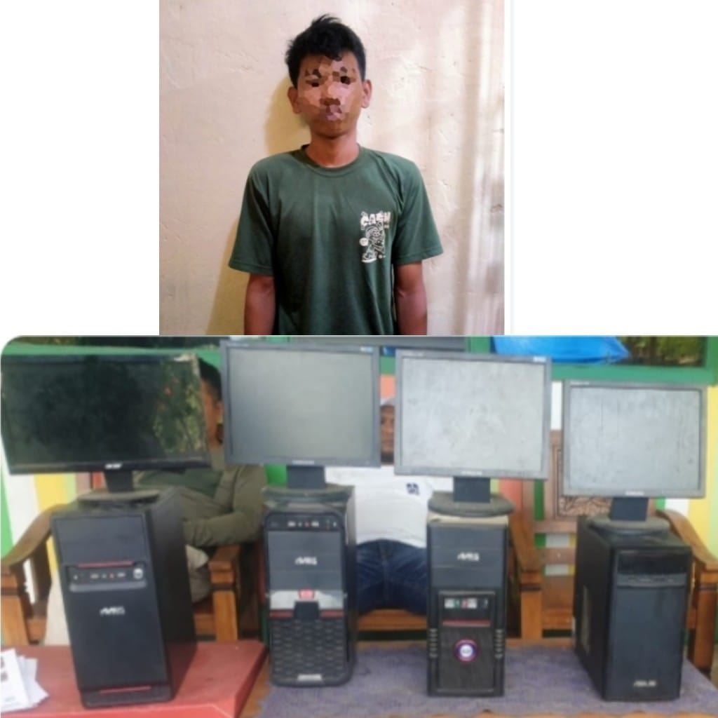 Barang bukti yang berhasil diamankan yakni 3 (tiga) Unit Monitor merk acer uk 14 in, 1 (Satu) Unit Monitor merk samsung uk 14 in dan 4 (Empat) Unit CPU Merk Avaris.