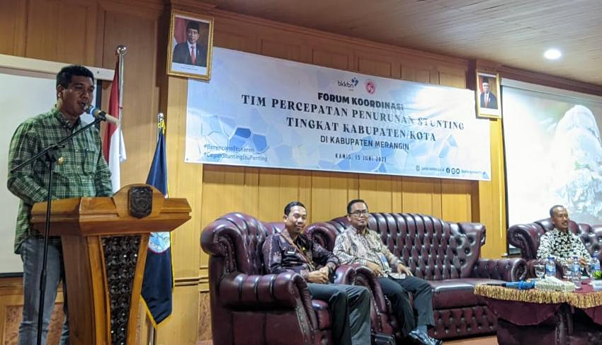 Reportika.co.id || Merangin, Jambi – Wabup Merangin Nilwan Yahya membuka forum koordinasi Tim Percepatan Penurunan Stunting (TPPS) Kabupaten Merangin 2023, di Aula Depati Payung Bappeda Merangin, Kamis (15/6).