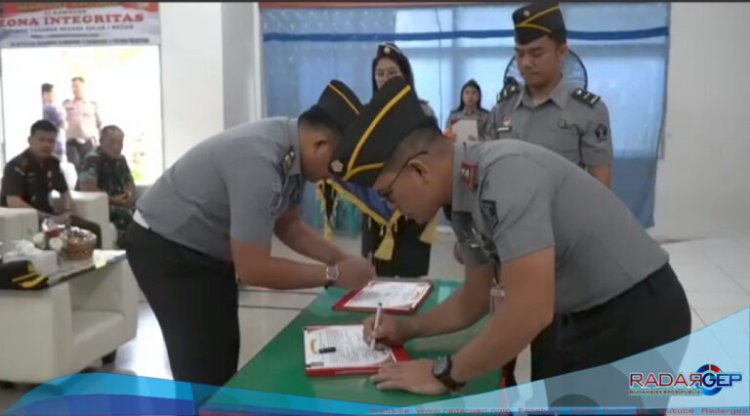 Reportika.co.id || Medan, Sumut – Penandatangan pakta integritas dan perjanjian kinerja tahun 2024 oleh Kepala Rutan Kelas I Medan, Nimrot Sihotang, Senin (15/01/2024)., Guna memantapkan langkah strategis menuju birokrasi yang bersih, Rumah Tahanan Negara (Rutan) Kelas I Medan Kanwil Kemenkumham Sumut, berkomitmen membangun Zona Integritas (ZI) menuju Wilayah Bebas dari Korupsi (WBK) dan Wilayah Birokrasi Bersih dan Melayani (WBBM). Hal ini ditandai dengan penandatangan pakta integritas dan perjanjian kinerja tahun 2024 oleh Kepala Rutan Kelas I Medan, Nimrot Sihotang, Senin (15/01/2024).