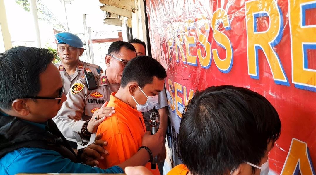 Dalam konferensi pers yang digelar di Polsek Bekasi pelaku AS dihadirkan untuk memberikan keterangan di depan awak media pada Rabu (31/01/2024).