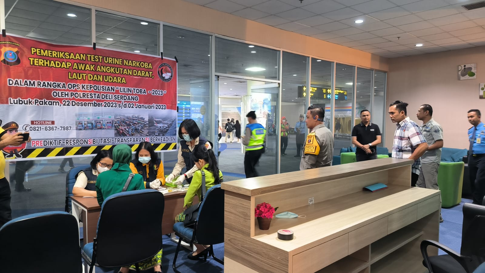 Reportika.co.id || Deli Serdang, Sumut – Menghadapi Nataru 2024 dalam rangka kegiatan Operasi Lilin Toba Tahun 2023, Polresta Deli Serdang bekerjasama dengan OIC Bandara Kualanamu, AVSEC Bandara Kualanamu, dan BNN Deli Serdang, menggelar test urine kepada Pilot, Co-pilot, Pramugari maskapai penerbangan dan Masinis Kereta Api Indonesia di Bandara Internasional Kualanamu Deli Serdang, pada Sabtu 30 Desember 2023.