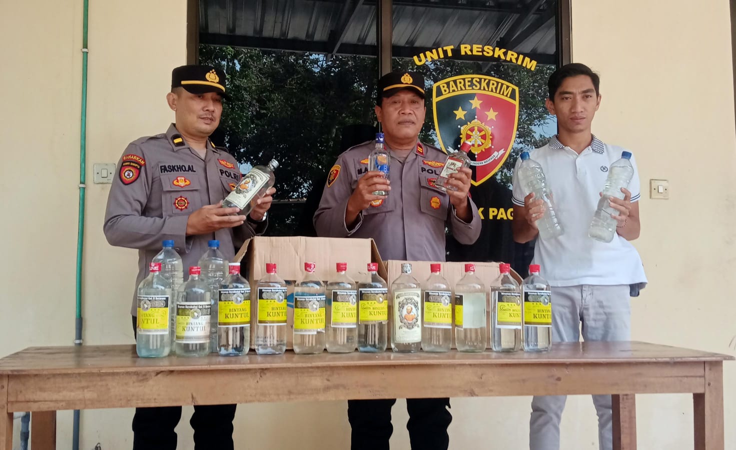 Diantaranya, 7 botol miras merek Vodka, 4 Island, 3 Tommy Stanley, 26 Bintang Kuntul dan 4 arak jowo.
