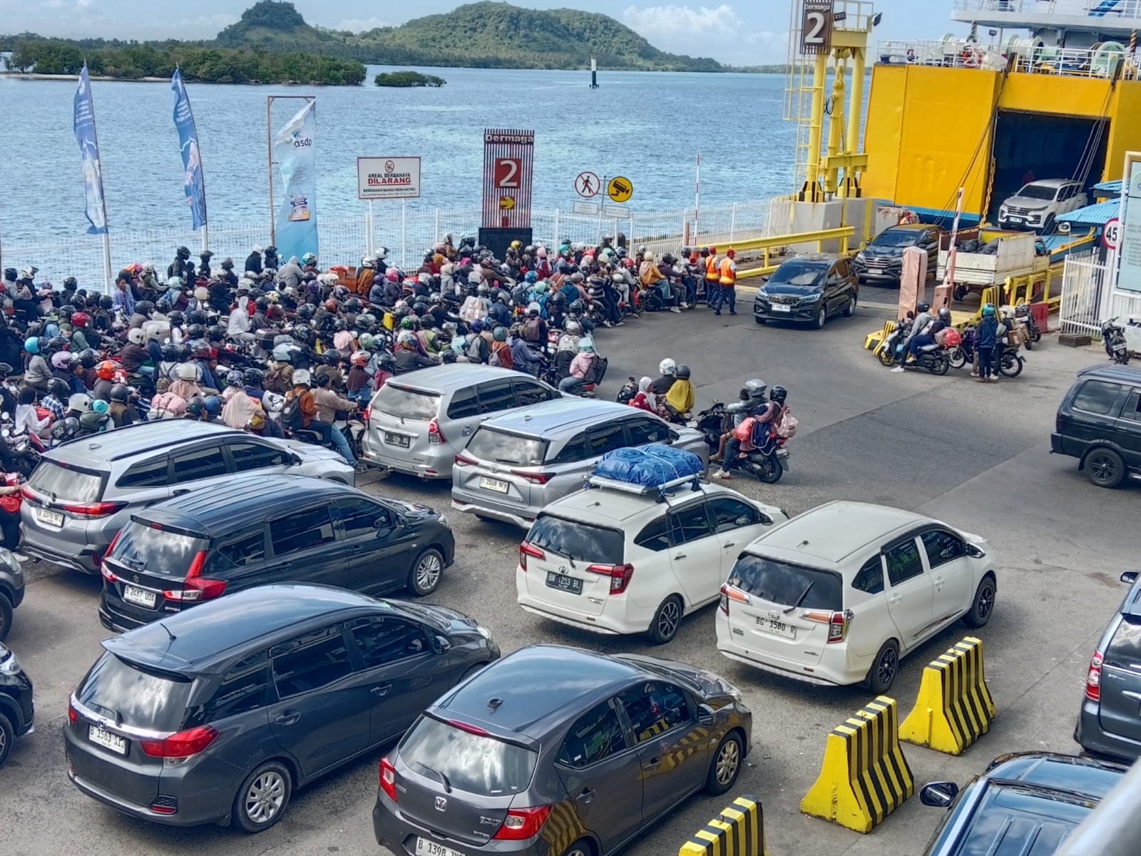 Tercatat realisasi kendaraan roda dua yang telah menyeberang pada HH mencapai 5.858 unit atau naik 3,3% dibandingkan realisasi tahun lalu yaitu 5.672 unit. Kendaraan roda empat mencapai 7.115 unit atau turun 12,1% dibandingkan realisasi periode yang sama tahun lalu sebanyak 8.095 unit.