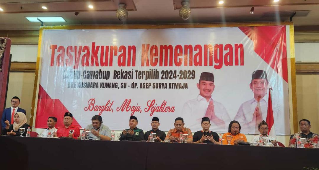 Reportika.co.id || Kabupaten Bekasi – Pasangan Ade Kuswara dan Asep Surya melalui Badan Saksi Pemilu DPC PDI Perjuangan Kabupaten Bekasi merilis hasil itung cepat Quick Count dan Real Count Pilkada Kabupaten Bekasi dengan hasil kemenangan bagi pasangan Calon (Paslon) Bupati/Wakil Bupati nomor urut 3 Ade Kuswara Kunang – Asep Surya Atmaja dengan perolehan 48%.