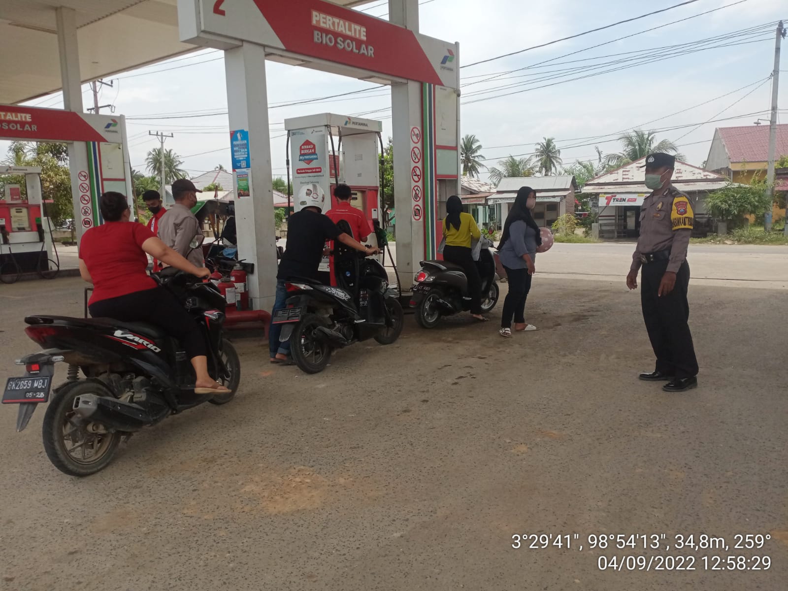 Pastikan kamtibmas aman pasca kenaikan harga Bahan Bakar Minyak (BBM), Polsek Lubuk Pakam Polresta Deli Serdang laksanakan patroli ke SPBU yang ada wilayahnya, Minggu (04/09/2022).