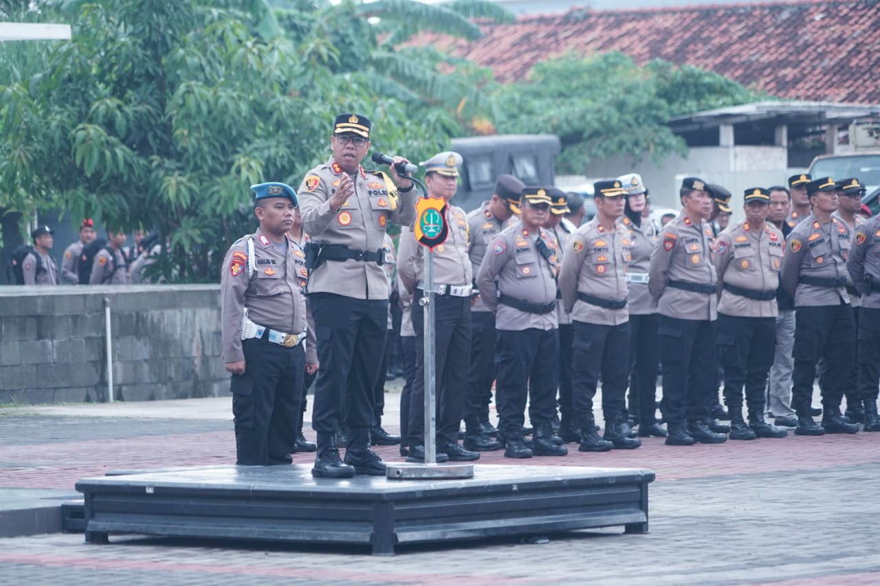 Terlihat, Suasana apel penuh semangat dan keseriusan, mencerminkan komitmen petugas keamanan untuk menjaga proses demokrasi agar berjalan dengan aman, tertib, dan adil.