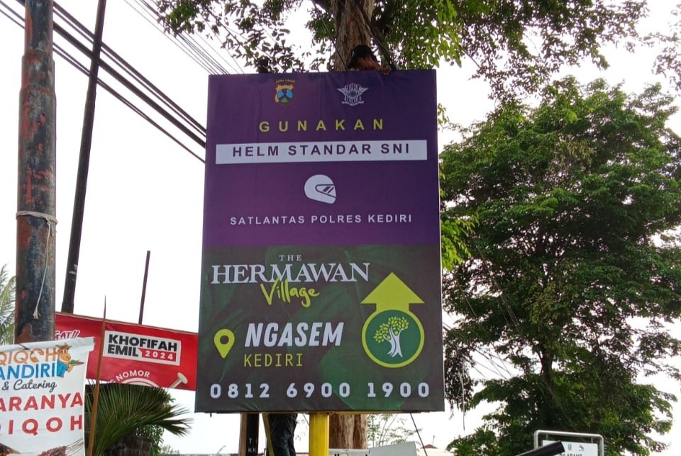 “Terkait kegiatan Pemasangan Banner Keselamatan Berlalulintas tersebut pihak The Hermawan Village telah melakukan Koordinasi dengan Satlantas Polres Kediri,” Pungkas Awan