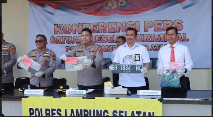 Kapolres Lampung Selatan AKBP Yusriandi Yusrin dalam konferensi persnya membeberkan keberhasilannya dalam merespon laporan dengan menangkap pelaku pencurian dengan kurang dari 24 jam.