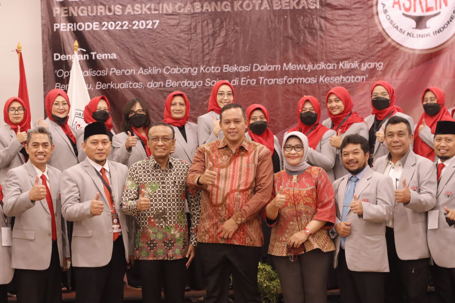 Usai sambutan Plt. Wali Kota Bekasi, kegiatan dilanjut dengan moment foto bersama pengurus organisasi ASKLIN dan segenap jajaran dokter-dokter yang tergabung di ASKLIN.