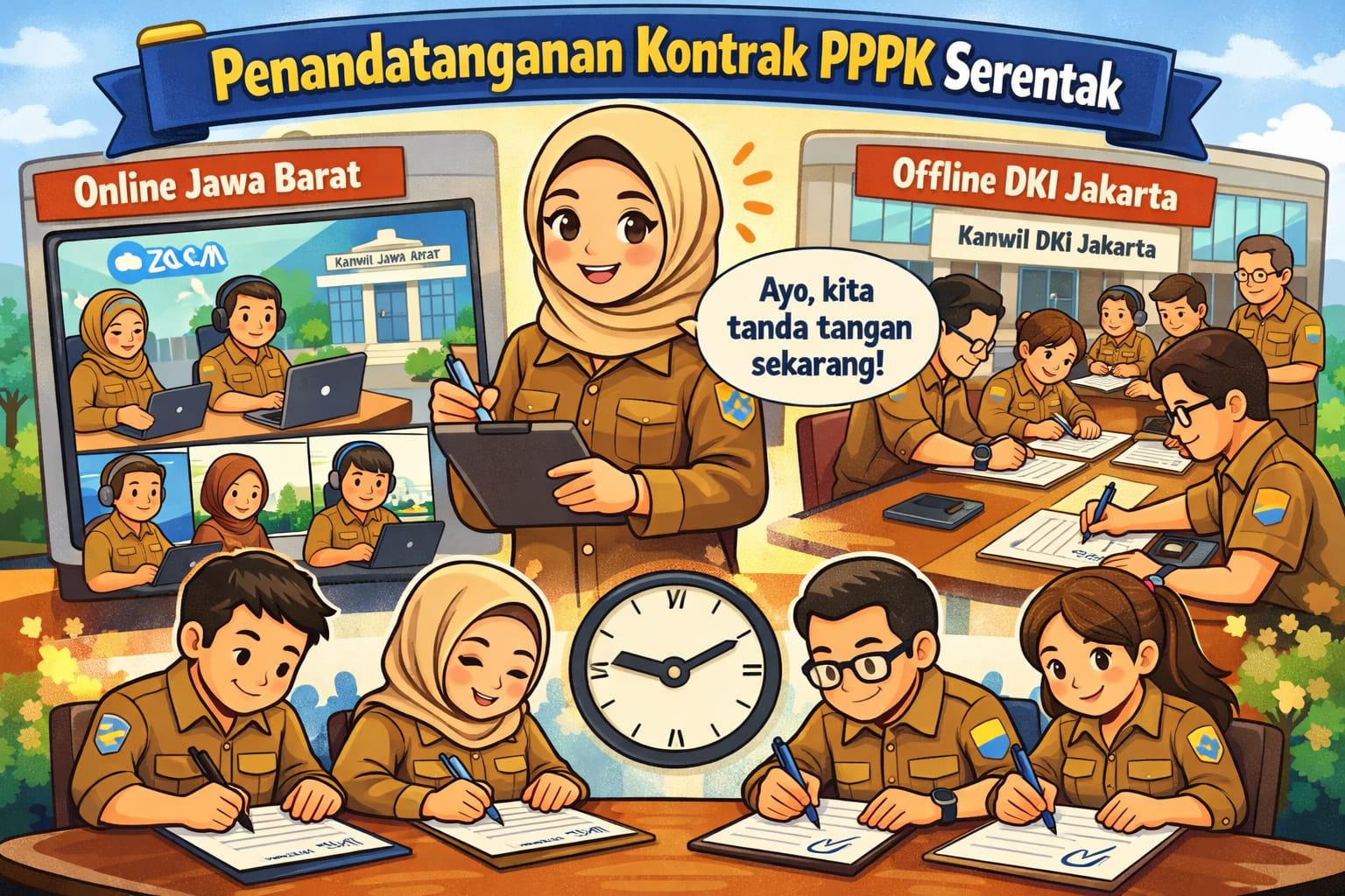 “Pelaksanaan untuk Jawa Barat dilakukan sejak pukul 09.00 WIB secara online dari kantor masing-masing dan disaksikan oleh Kanwil melalui Zoom. Sementara untuk DKI, pegawai hadir langsung di Kanwil,” jelas Ratna saat ditemui di kantor setempat.