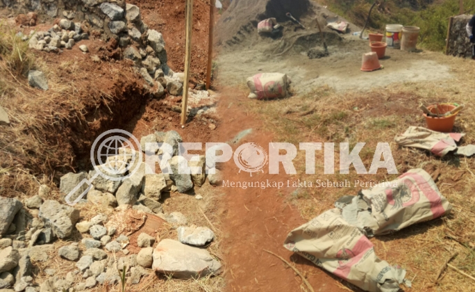 Diduga menggunakan bahan-bahan material tidak sesuai RAB (Rencana Anggaran Belanja), seperti menggunakan pasir Atras, Semen Garuda, Batu Curi, dan diduga pondasi dasarnya tidak menggunakan adukan hanya langsung dipasang batu, adukan semen nya kurang sehingga kelihatan adukannya warna kemerah merahan.
