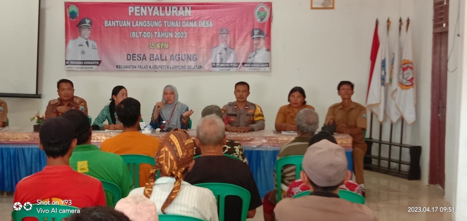Reportika.co.id || Palas, Lampung Selatan – Kepala Desa Bali agung Kecamatan Palas Lampung Selatan Made Wisnu Ngabdi salurkan bantuan langsung tunai (BLT-DD) ke 35 KPM, yang sudah di verifikasi melalui musdesus dan beras 10 kg bantuan dari badan pangan nasional, senin 17/4/2023.