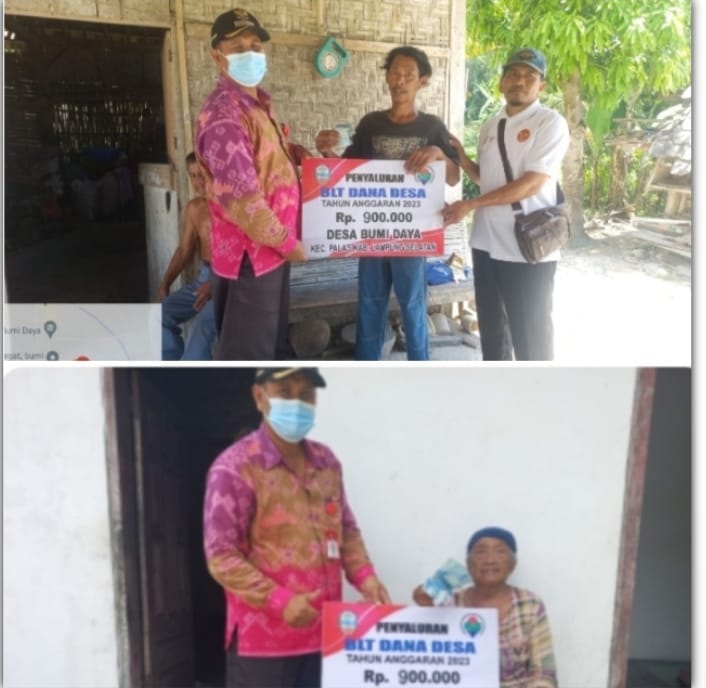 Reportika.co.id || Palas, Lampung Selatan – Sebanyak 42 keluarga penerima manfaat (KPM) di Desa Bumidaya, Kecamatan Palas, Lampung Selatan, terima bantuan langsung tunai (BLT-DD) 2023. Lima KPM diantaranya disalurkan langsung secara door to door.