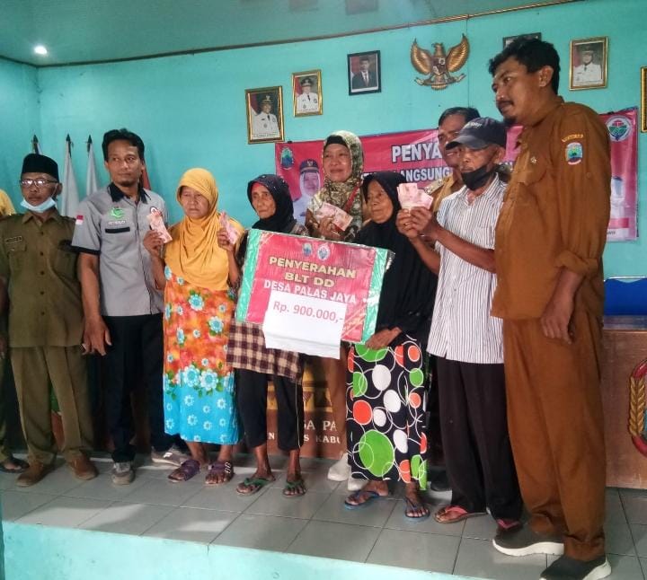 Sugiarto selaku kepala desa Palas Jaya, saat memberikan sambutan menuturkan, dalam pembagian bantuan langsung tunai (BLT DD) dengan jumlah Rp.28.800.000,- disalurkan ke 32 KPM, mendapatkan Rp.900.000,- per KPM selama tiga bulan Januari-maret, yang perbulannya Rp.300 ribu per KPM. dan dilanjutkan pembagian beras dari Badan pangan nasional (Bapanas) beras 10 Kg.