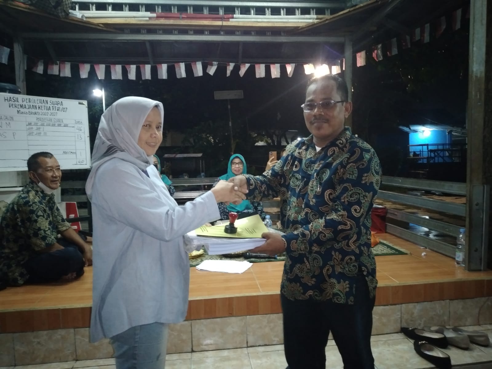 Pemilihan di mulai sampai dengan penghitungan yang terpilih menjadi ketua RT terpilih Bapak Ivan.M menjadi RT.001 yang baru di periode tahun 2022 sampai 2027, dari pemilihan 60 suara absen 1, dan stempel RT diserahkan kembali kepada ketua RT 001 yang baru.