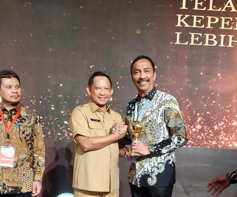 Wakil Bupati Wajo, Amran mewakili Pemkab Wajo menerima penghargaan tersebut yang diserahkan langsung oleh Menteri Dalam Negeri, Tito Karnavian pada acara Penyerahan Penghargaan Universal Health Coverage (UHC) kepada Pemerintah Daerah yang digelar di Balai Sudirman, Jakarta, Selasa (14/3/2023).