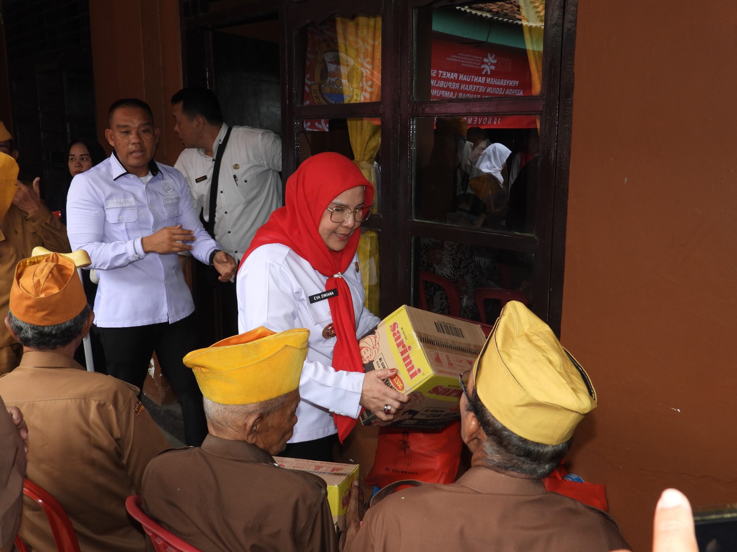 Wali Kota Bandar Lampung, Eva Dwiana memberikan sebanyak 80 paket sembako lengkap. “Alhamdulillah, setiap tahunnya pada Hari Pahlawan Pemkot Bandar Lampung melalui Dinas Sosial selalu memberikan bantuan kepada para veteran pejuang perang,” kata Eva, pada Rabu (22/11/2023).