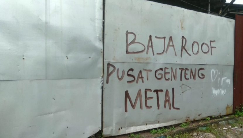 Berdasarkan pantauan dan Investigasi di lapangan, Tampak bagian depan lokasi usaha dengan papan bertuliskan pusat penjualan baja ringan dan genteng metal. Area jalan terlihat sempit dengan permukaan tidak rata, dipenuhi lumpur serta genangan air berwarna keruh yang diduga berasal dari sistem drainase yang tidak berfungsi optimal.