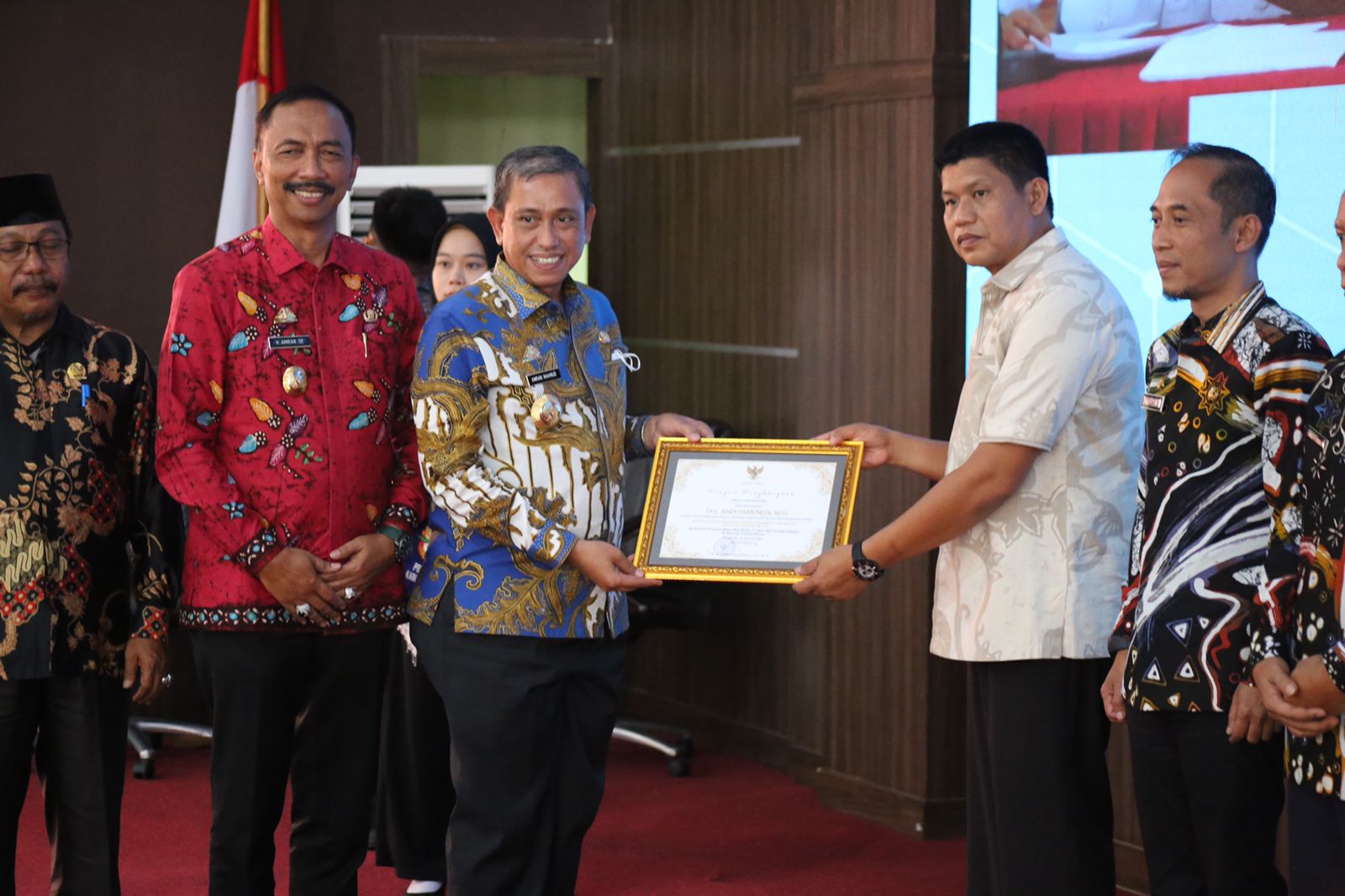 Penganugerahan penghargaan diberikan langsung Bupati Wajo, Amran Mahmud, didampingi Wakil Bupati Wajo, Amran, Sekretaris Daerah (Sekda) Wajo, Armayani, serta Ketua Komisi II DPRD Wajo, Sudirman Meru, mewakili Ketua DPRD Wajo, di Ruang Pola Kantor Bupati Wajo, Jumat (2/9/2022).