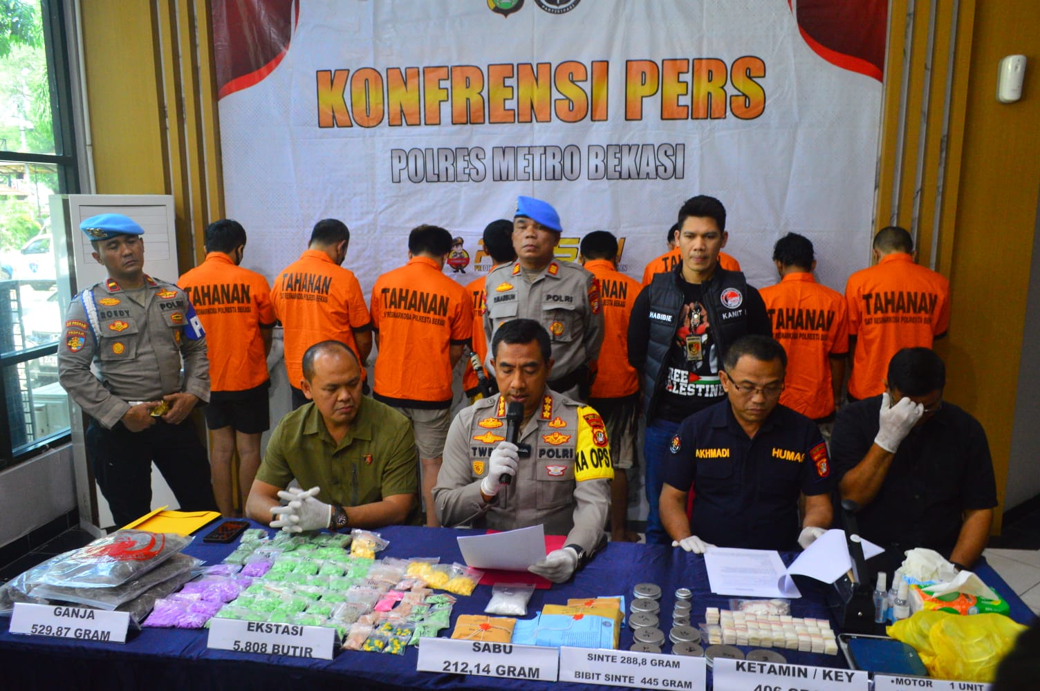 Reportika|| Kab Bekasi – Polres Metro Bekasi berhasil mengungkap kasus peredaran narkoba senilai Rp 7.732.425,450. Pengungkapan dilakukan sejak 3 Juni – 8 Agustus 2024, dari 9 perkara yang ditangani.