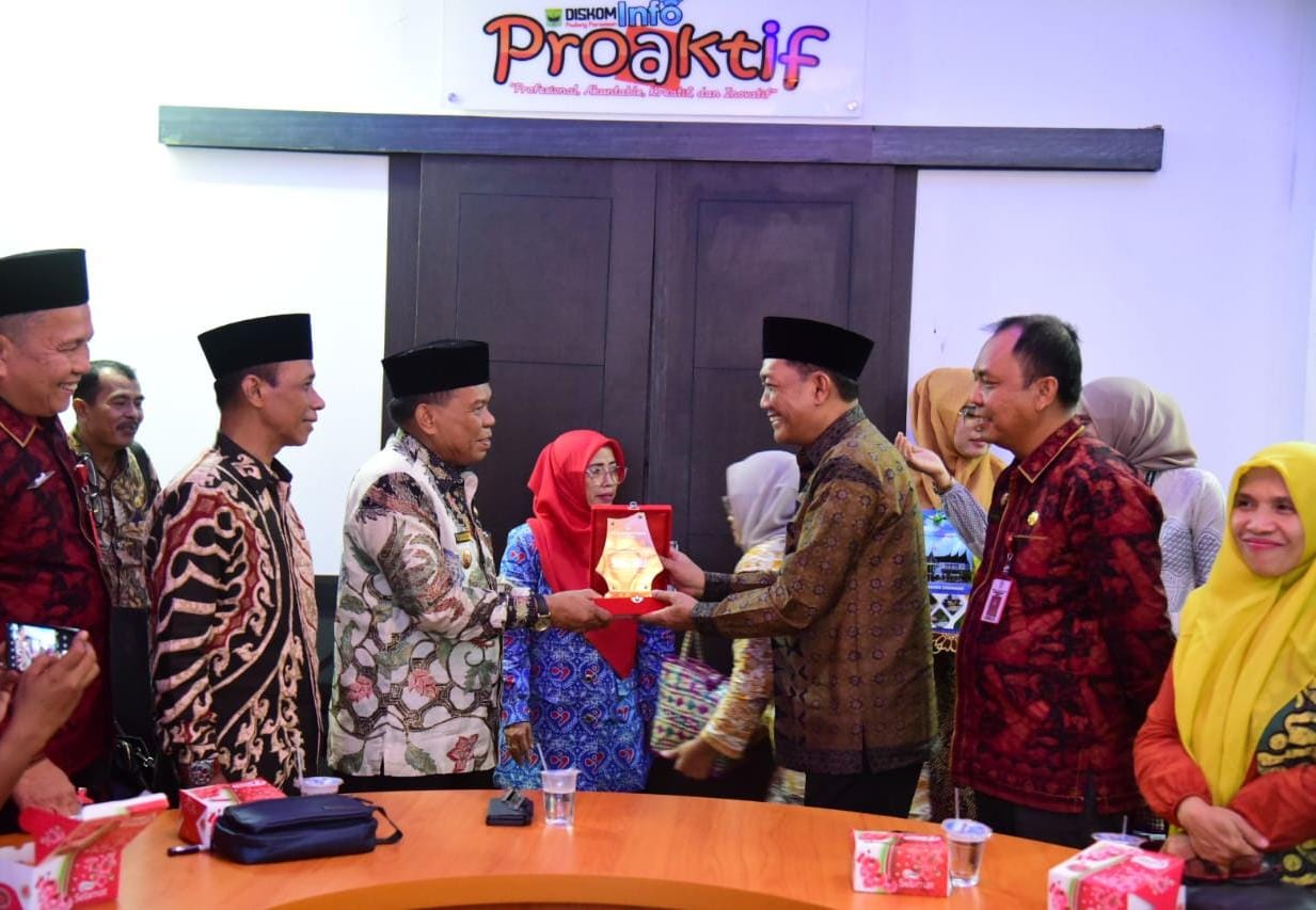 Ketua TPPS Merangin Fajarman bersama Plt Kadis Pengendalian Penduduk dan Keluarga Berencana (PPKB) Suherman serta beberapa orang anggota TPPS Merangin diterima Wakil Bupati Padang Pariaman, Rahmang di kantor bupati, Kamis (05/12).