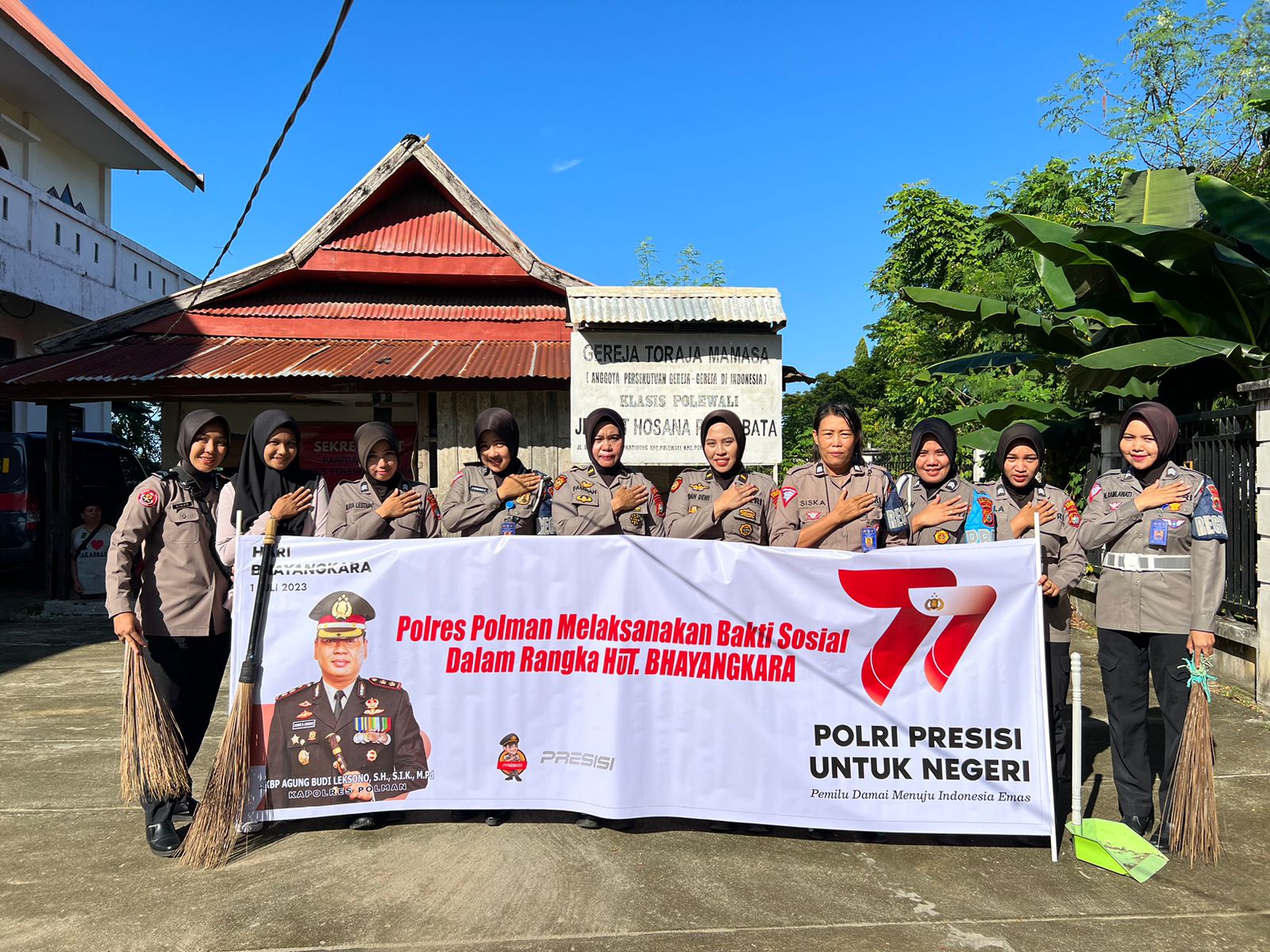 “Kegiatan bakti sosial di rumah-rumah ibadah seperti masjid dan gereja sebagai bentuk rasa syukur Polri terhadap Tuhan Yang Maha Esa karena di usia 77 Tahun Polri semakin dewasa dan berbenah ke arah yang lebih baik,” Kata Kapolres Polman