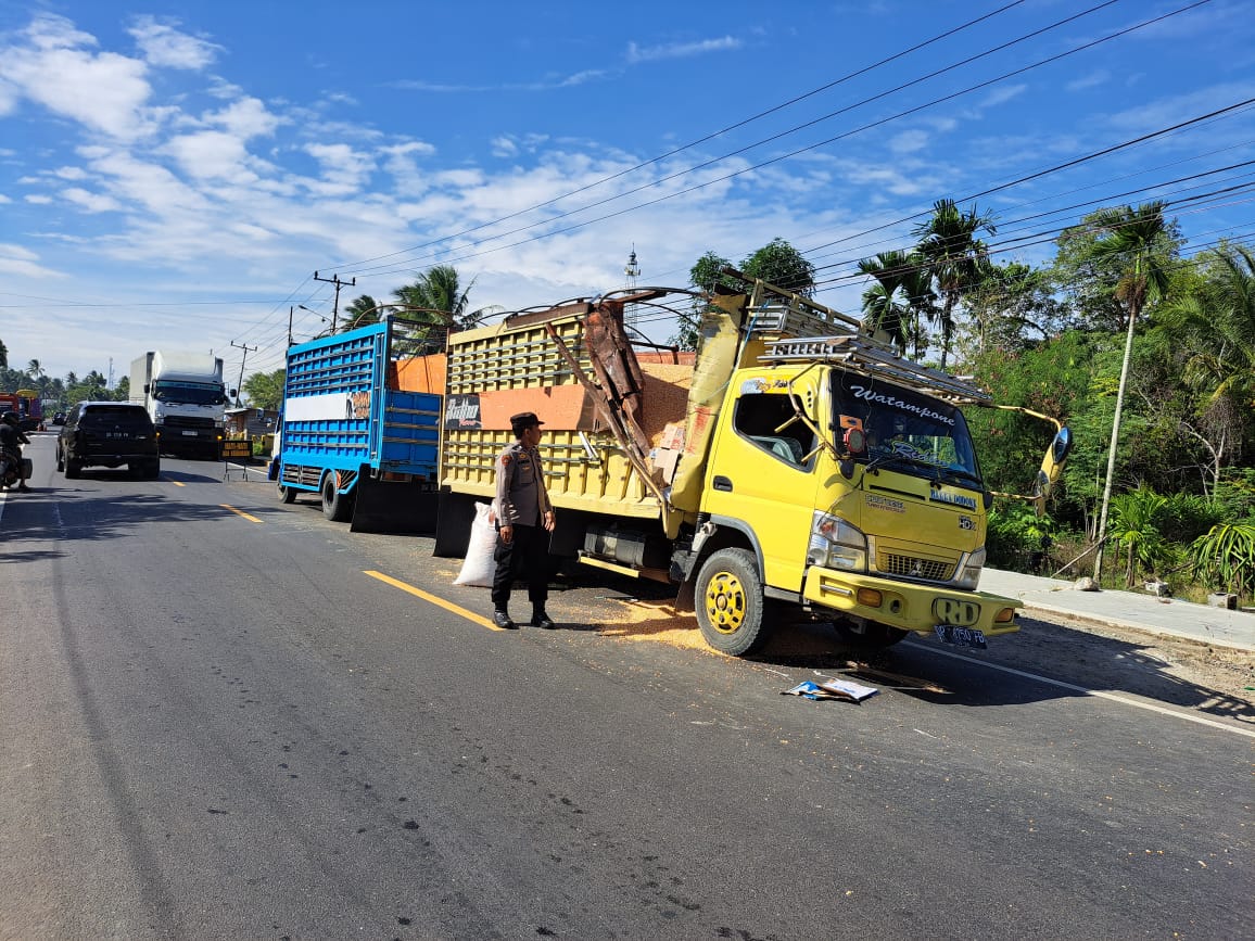 Truk Toyota Dino berplat DP 8750 FB dikemudikan oleh Muh. Adi (26) Alamat Dusun Padang Kanang Desa Malenggang Kecamatan Buah Ponrang Kabupaten Luwu yang bergerak dari arah Selatan ke Utara di TKP.