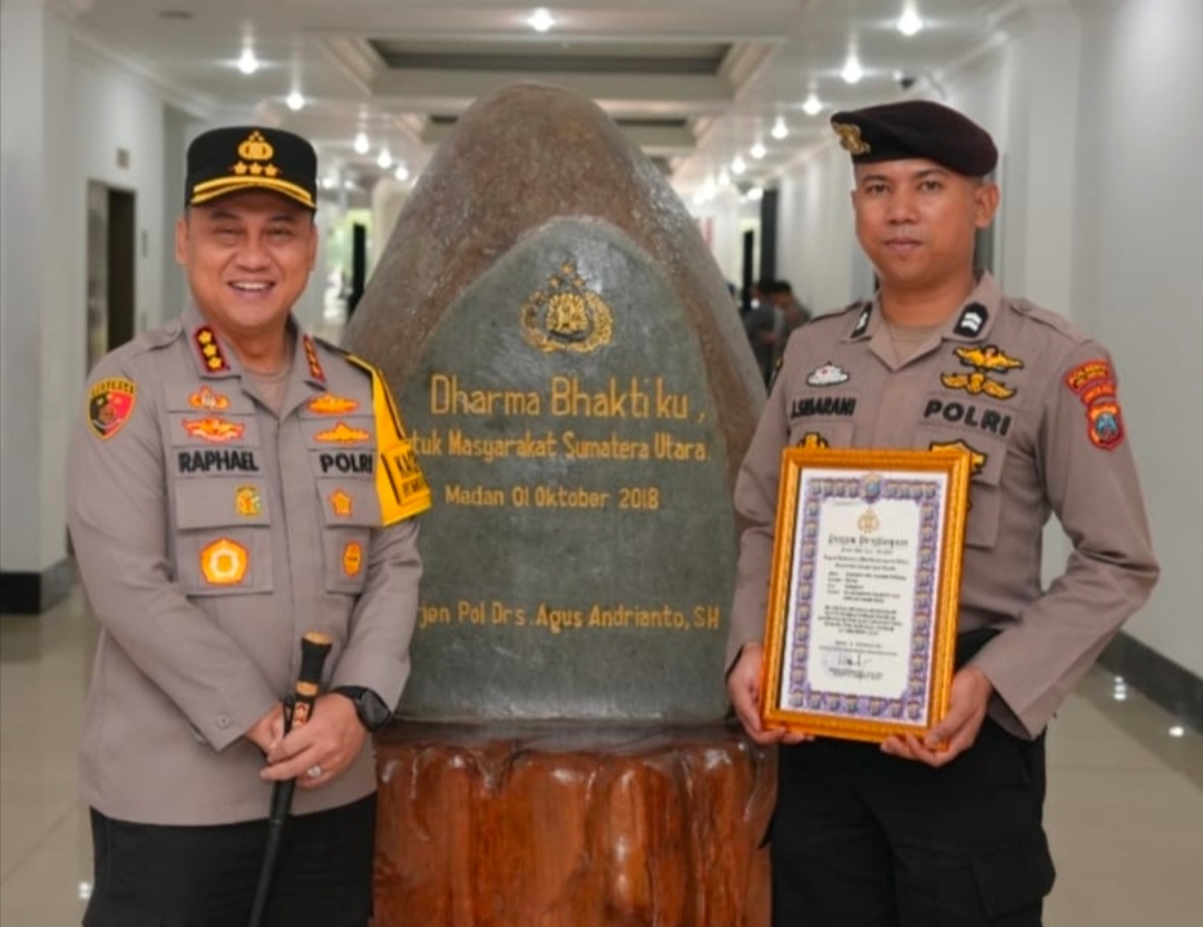 Reportika.co.id || Deli Serdang, Sumut – Personil Polresta Deli Serdang Briptu Johanes Abdi Negoro Sibarani menerima penghargaan dari Kapolda Sumut, Irjen Pol Whisnu Hermawan Februanto, S.I.K., M.H., dalam apel pagi yang digelar di Lapangan Apel Mapolda Sumut, Senin (02/12/2024).