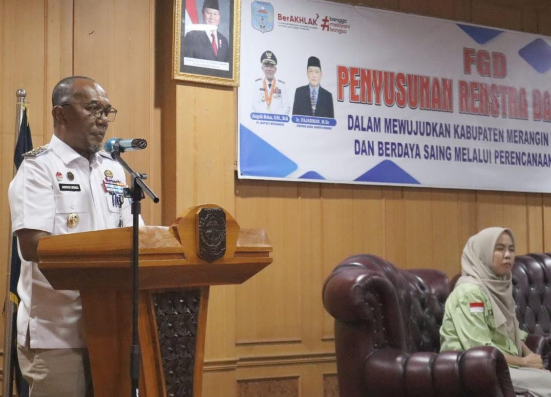 Reportika.co.id || Merangin, Jambi – Penjabat (Pj) Bupati Merangin Jangcik Mohza membuka Forum Group Discussion (FGD), penyusunan Restra dan Renja OPD Kabupaten Merangin, di Aula Depati Payung Bappeda Merangin, Rabu (4/12).