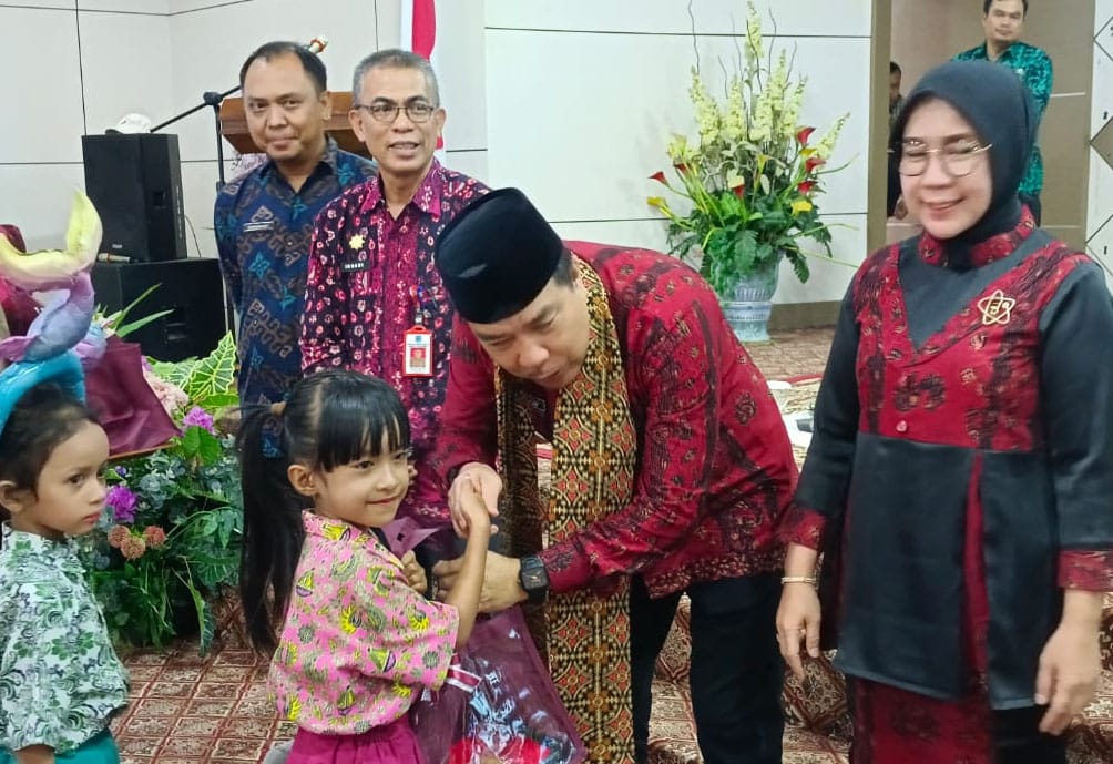 Reportika.co.id || Merangin, Jambi – Pj Bupati Merangin H Mukti dan Bunda PAUD (Pendidikan Anak Usia Dini) Kabupaten Merangin Dr Hj Indria Mayesti Mukti, mengajak anak-anak ramai-ramai memakan ikan.