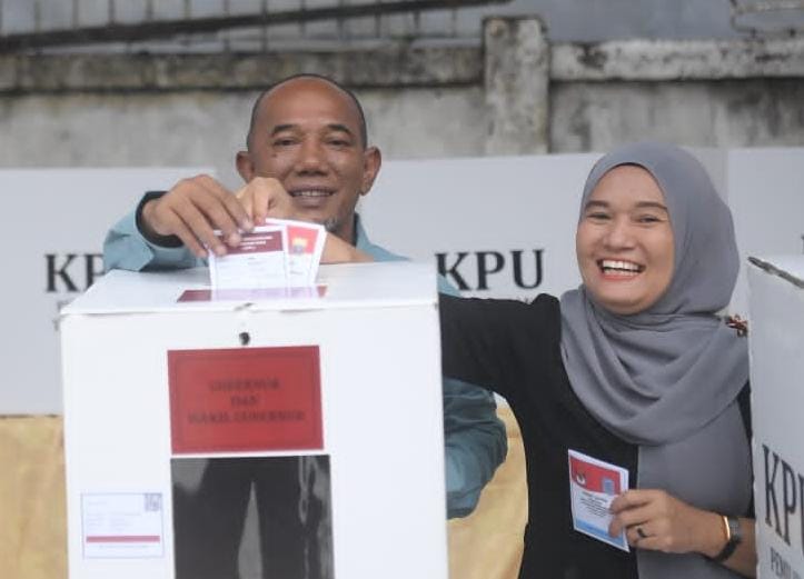 ‘’Alhamdulillah saya bersama istri telah menggunakan hak pilih di TPS sebelah rumah dinas bupati Merangin ini. Terimakasih kepada masyarakat yang telah menggunakan hak pilihnya dengan baik,’’ujar Pj Bupati.