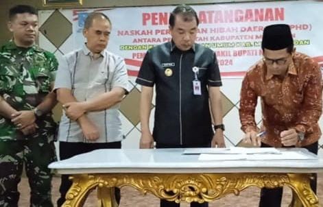 Reportika.co.id || Merangin, Jambi – Pj Bupati Merangin H Mukti bersama Ketua Komisi Pemilihan Umum (KPU) Kabupaten Merangin Shobirin, menandatangani Naskah Perjanjian Hibah Daerah (NPHD) Pemerintah Kabupaten Merangin, Sabtu (18/11).