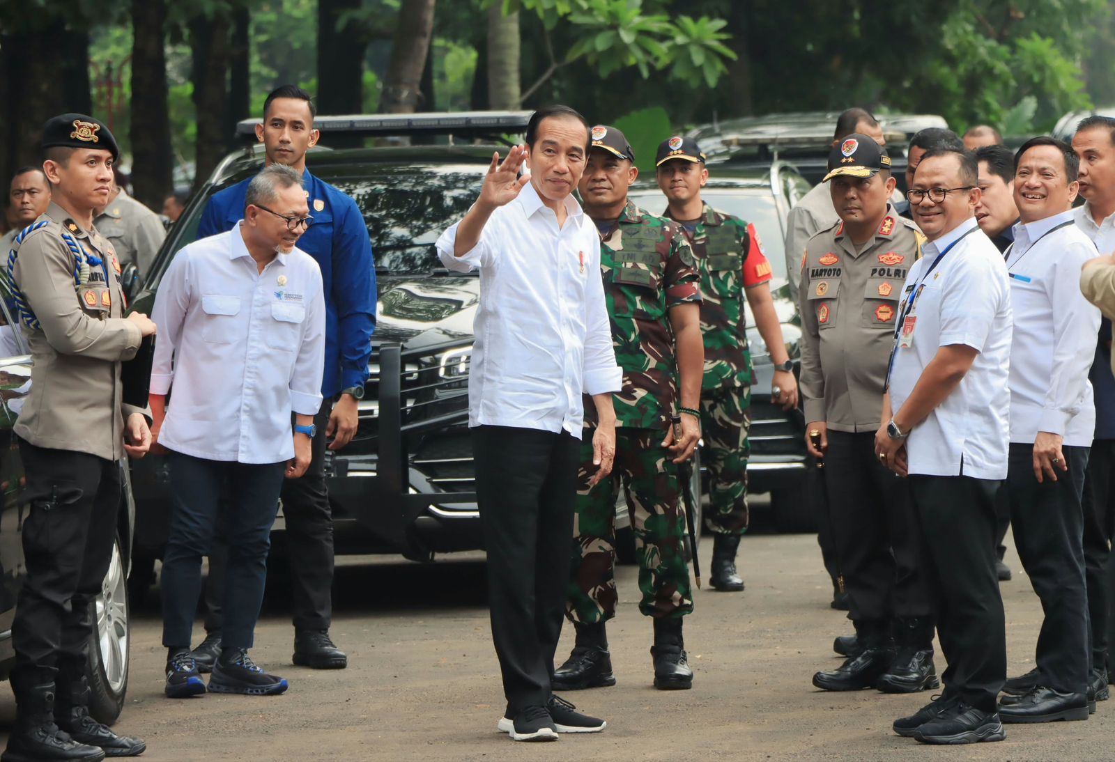 Pj. Wali Kota Bekasi, Gani Muhamad menyambut langsung Kedatangan Presiden Joko Widodo bersama Menteri BUMN Erick Thohir, Menteri Perdagangan Zulkifli Hasan, Direktur Utama Pemodalan Nasional Madani (PNM) Arief Mulyadi, dan Pj. Gubernur Jawa Barat Bey Machmudin.