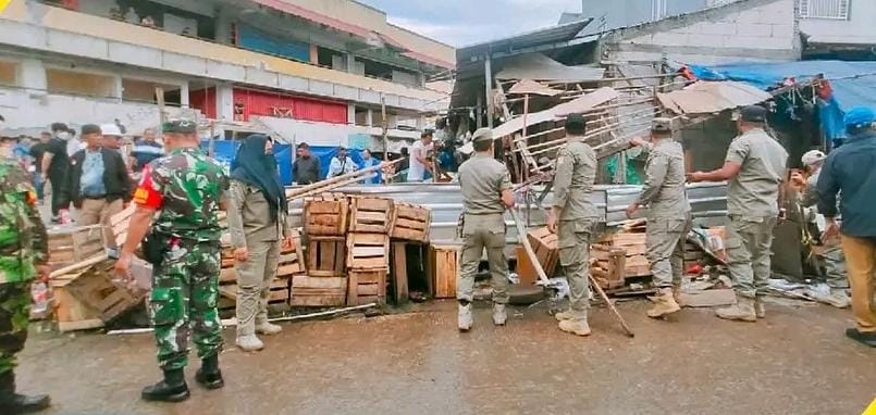 Reportika.co.id || Kota Bekasi – Kedua kalinya penertiban PKL (Pedagang Kaki Lima) yang berada disekitaran Pasar Bantargebang oleh Dinas Perdagangan dan Perindustrian (Disdagperin) Kota Bekasi, Satpol PP, Polsek Bantargebang dan TNI. Selasa (23/01/2024).