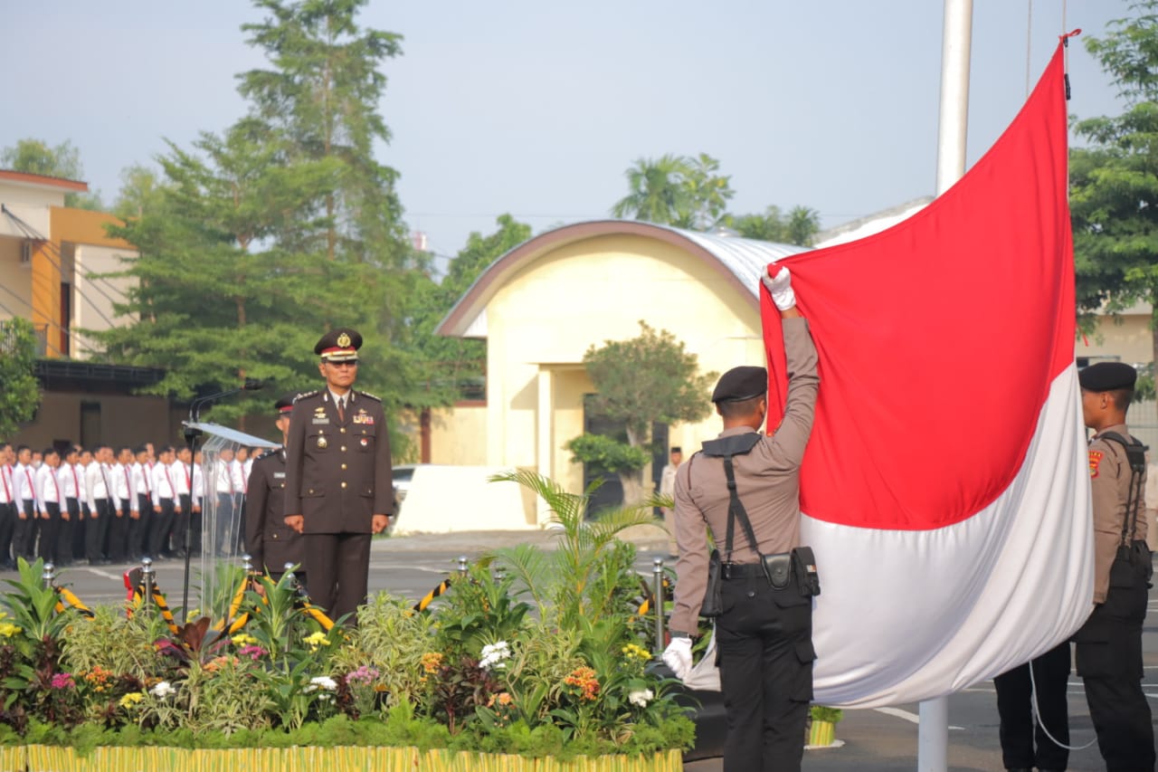 Pelaksanaan upacara di hadiri pejabat utama Polda Lampung, Personil Polda Lampung dan Asn Polda Lampung